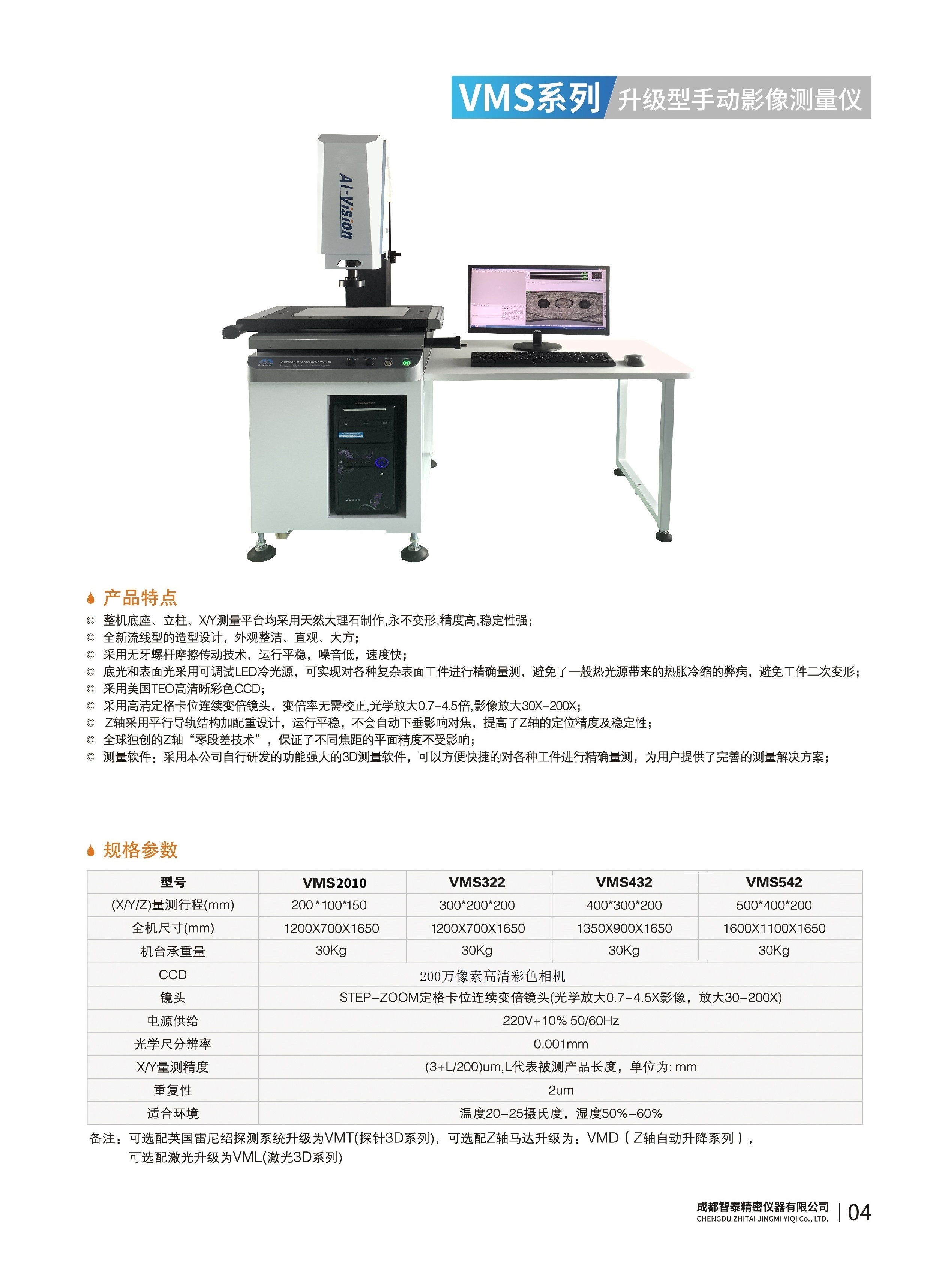 成都智泰精密儀器有限公司專注于精密測(cè)量?jī)x器,人工智能,智能制造領(lǐng)域,專業(yè)從事智能視覺自動(dòng)化檢測(cè)解決方案的貿(mào)易型企業(yè)。公司成立于2011年,位于天府之國(guó)成都,現(xiàn)有行業(yè)精英十余人,辦公倉(cāng)儲(chǔ)面積200余平米。 公司主要產(chǎn)品為精密光學(xué)影像測(cè)量?jī)x,精密輪廓形狀測(cè)量?jī)x,精密機(jī)器人定位系統(tǒng),精密智能視覺尺寸檢測(cè)儀器,精密表面缺陷智能檢測(cè)設(shè)備,工業(yè)工程特種機(jī)器人。 公司憑借過硬的技術(shù)實(shí)力和產(chǎn)品方案,率先進(jìn)入智能視覺自動(dòng)化檢測(cè)領(lǐng)域,推廣以精密智能視覺自動(dòng)化檢測(cè)為基礎(chǔ)的機(jī)器人自動(dòng)化應(yīng)用,公司不斷整合上下游的資源,擁有巨大的全產(chǎn)業(yè)鏈優(yōu)勢(shì)。客戶群體覆蓋了我國(guó)精密制造業(yè)的多數(shù)領(lǐng)域,包括航空、航天、軍工、汽車、新能源、光伏、食品,精密電子、精密機(jī)械、模具、PCB、LCD、五金、塑膠、醫(yī)療、教育、計(jì)量及科研院所等行業(yè)。 公司創(chuàng)新的產(chǎn)品能滿足生產(chǎn)與制造行業(yè)客戶的要求,訓(xùn)練有素的工程師能及時(shí)提供多種技術(shù)服務(wù),如解...